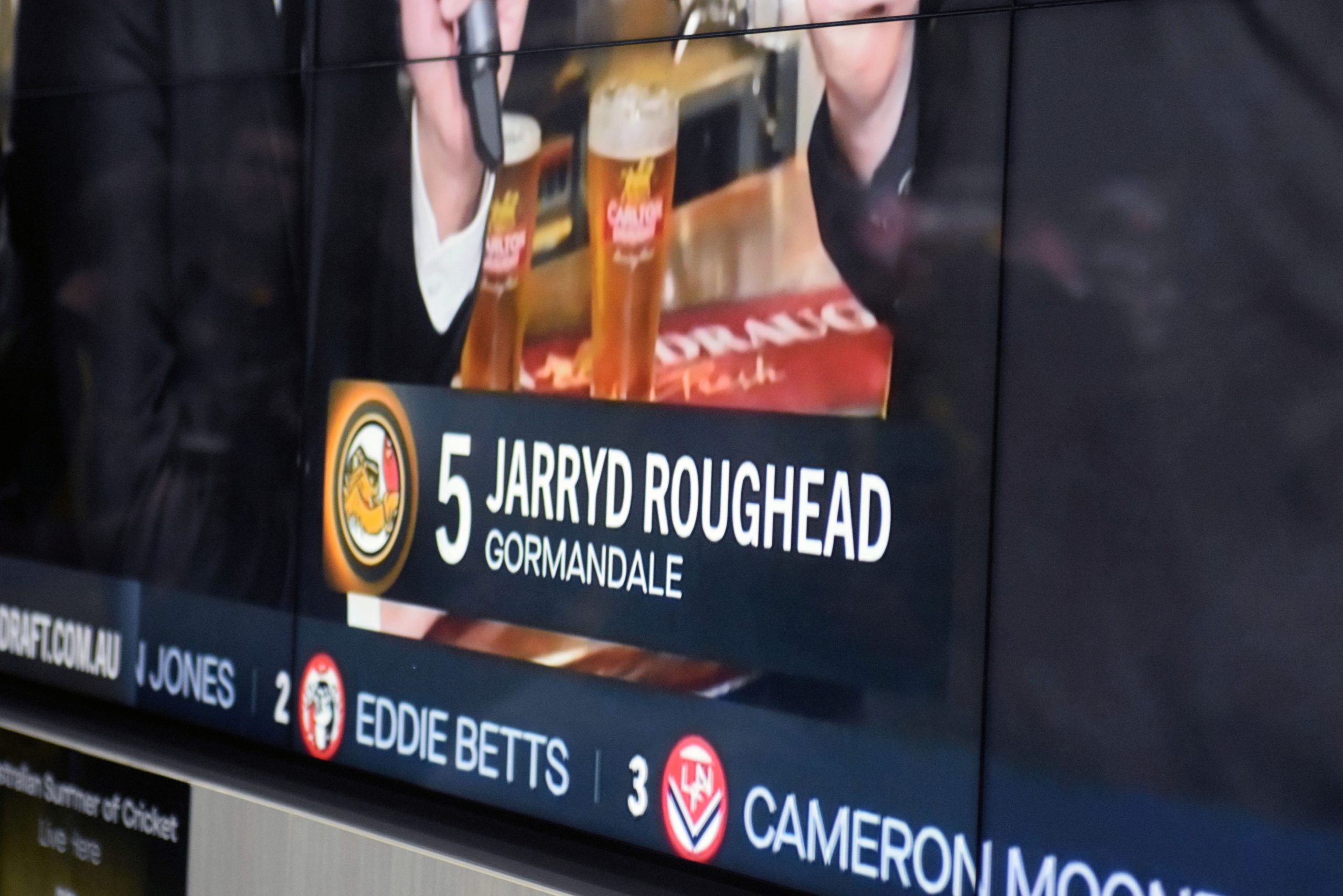 A collective ‘awww’ went around the sports bar when Betts was taken by another club, but this was quickly forgotten when the name ‘Jarryd Roughead’ was announced at Pick 5 a short time later.