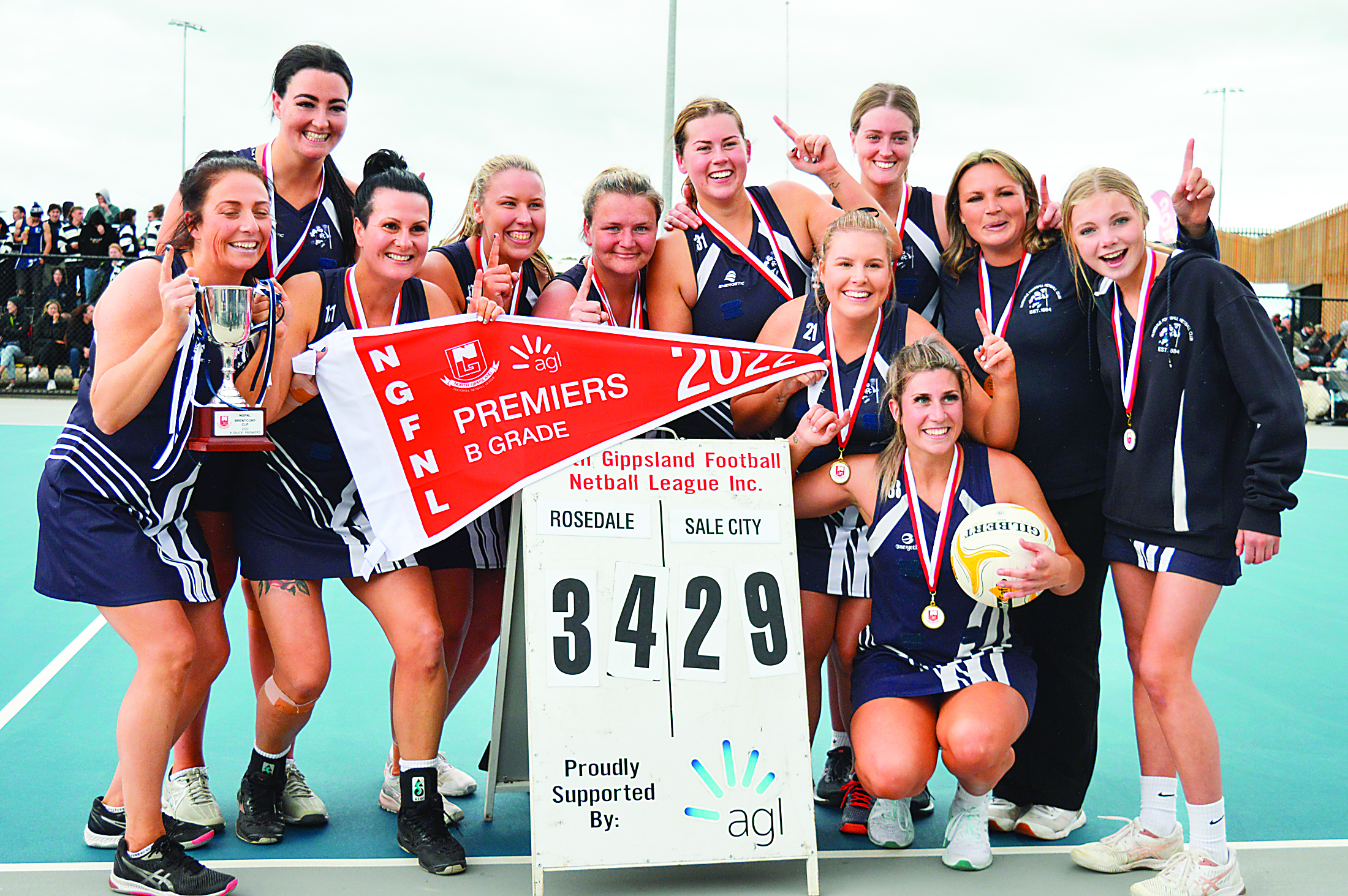 DESPITE the unwaveringly indecisive weather, seeing rain one minute and sunshine the next, Rosedale and Sale City Football-Netball Club supporters flocked in droves to Heyfield Football-Netball Club’s court on Saturday to watch the North Gippsland Football-Netball League 2022 B Grade Grand Final.
