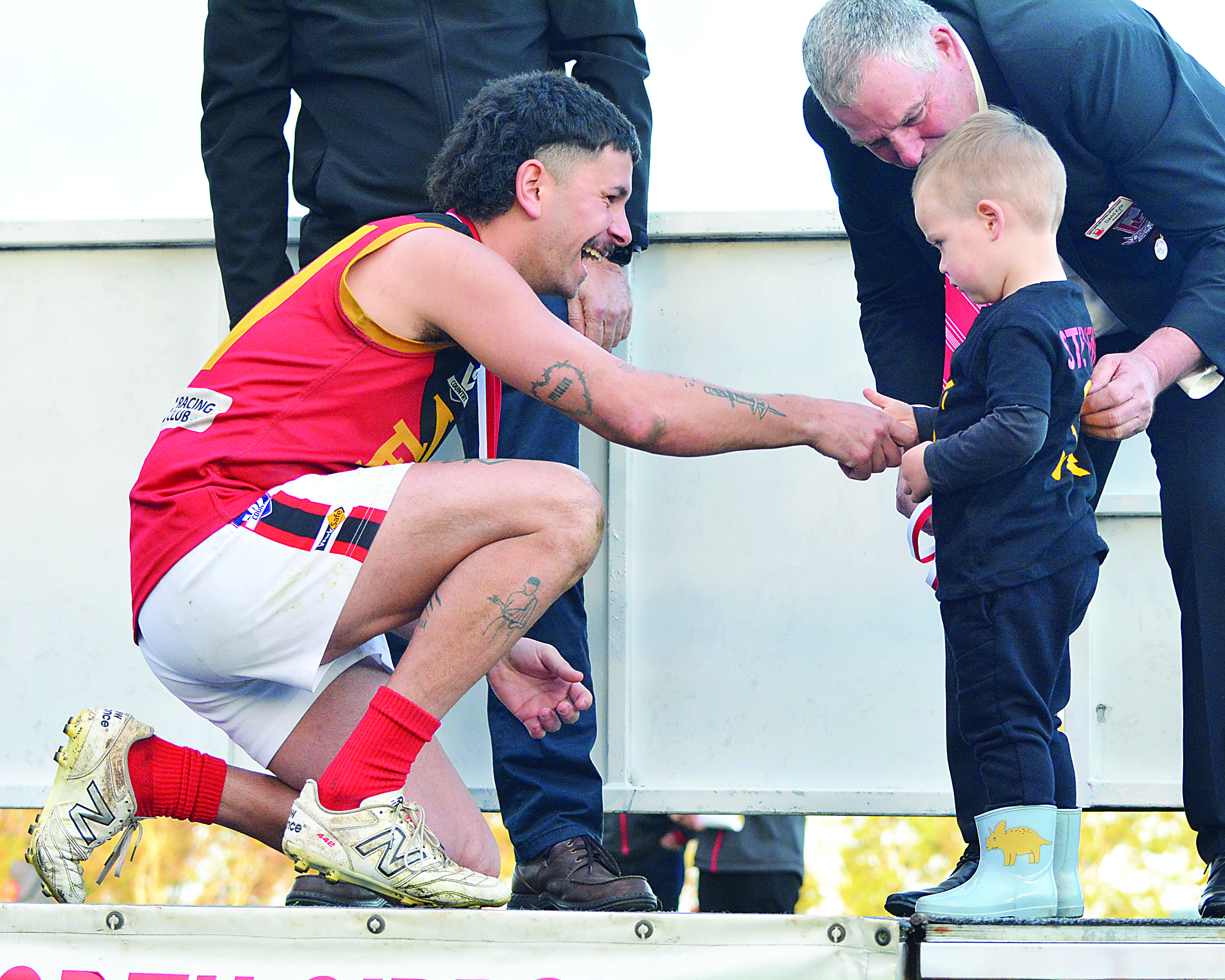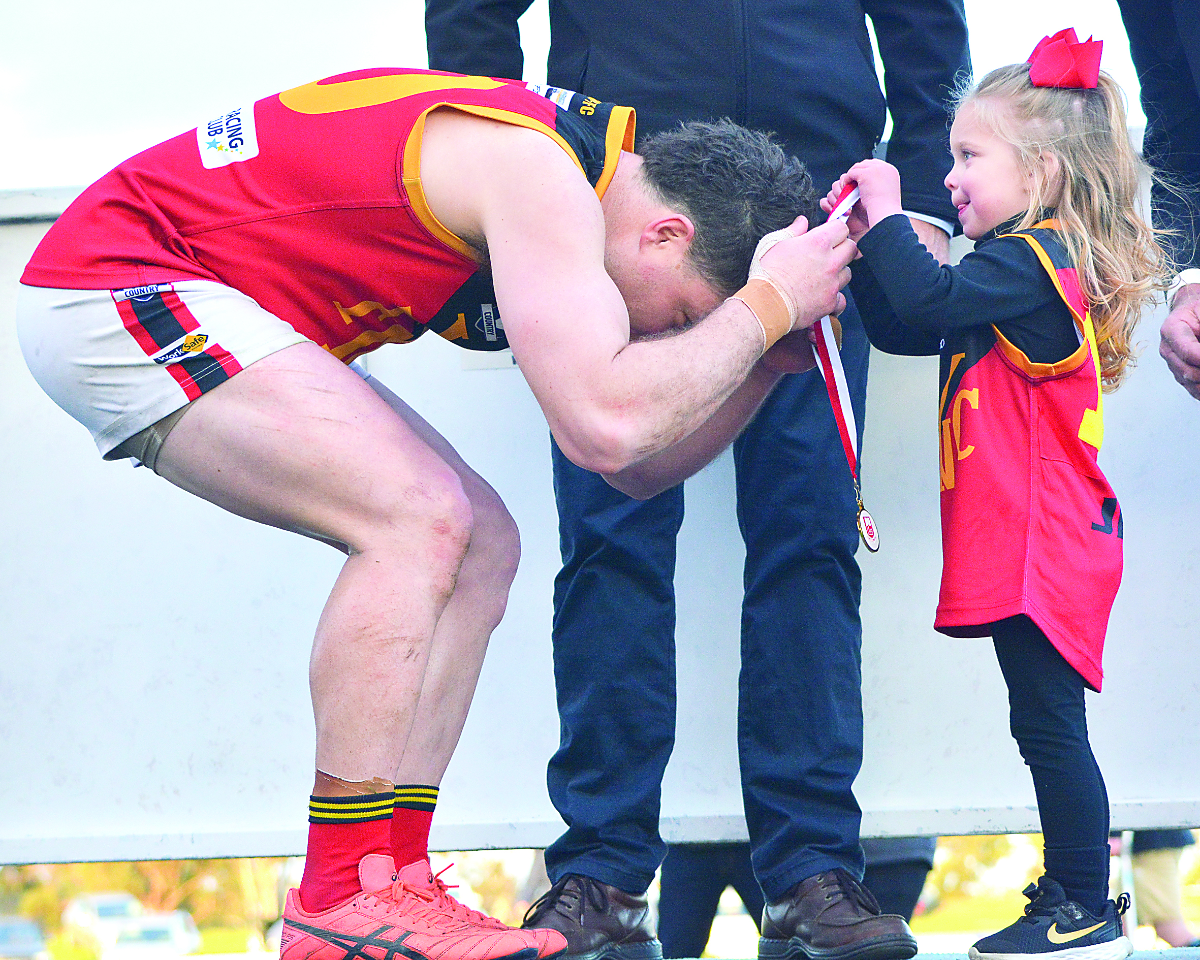 After a deafening victory song at the fields centre, the Jets took their position by the NGFNL podium to receive their well-deserved premiership medals, presented by the littlest members of the YYNFNC community.