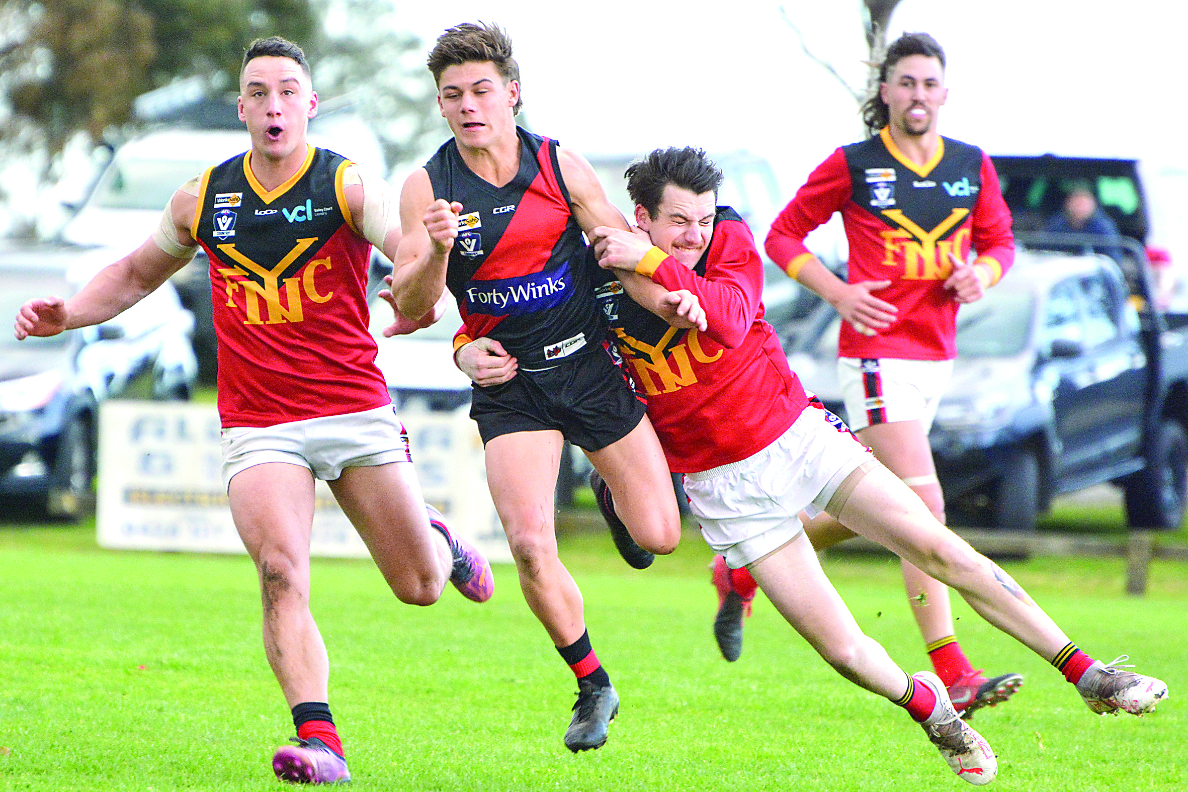 The Bombers scrounged up a goal in the 19th minute, with TTU’s Trent Hourigan, Rowan Hore and Hayden Willaton the best of the boys in redand black.