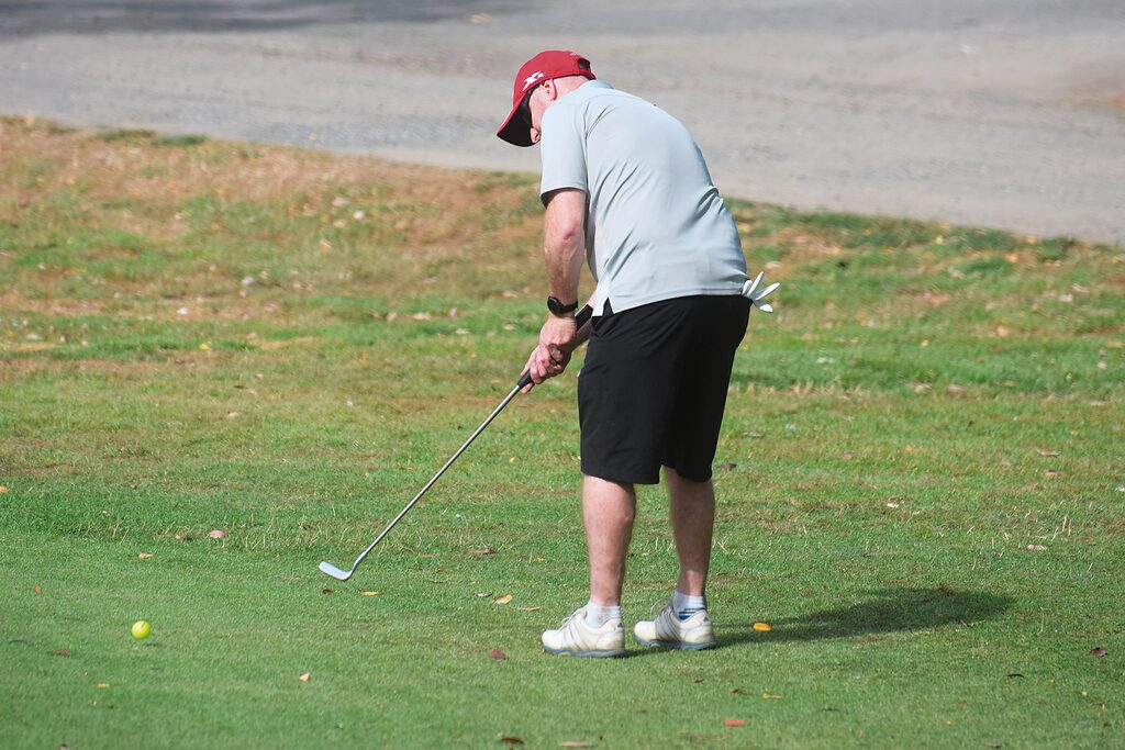 Tap it in: Phil Denhouting, representing platinum sponsor Betta Home Living, shows his style.