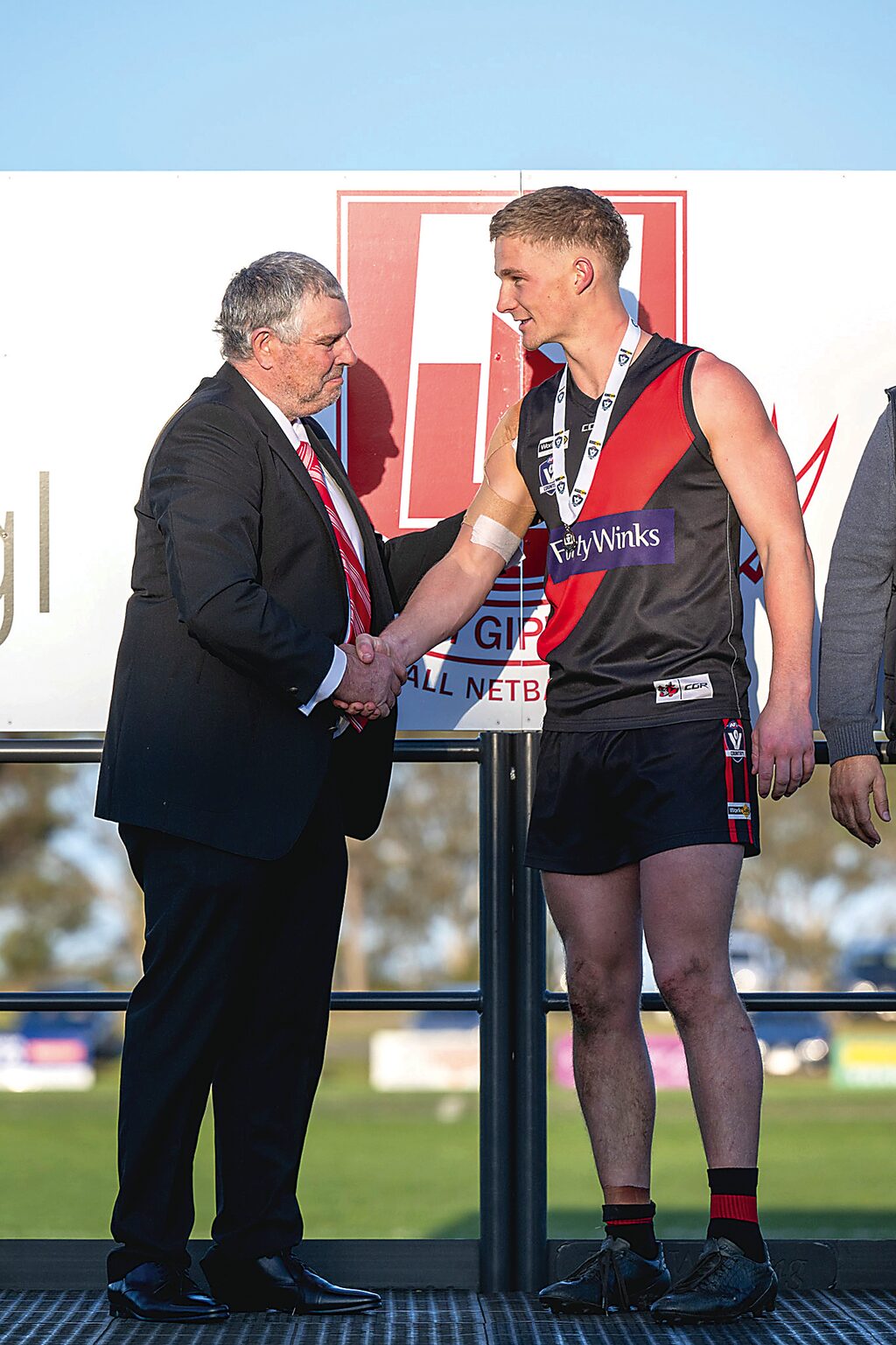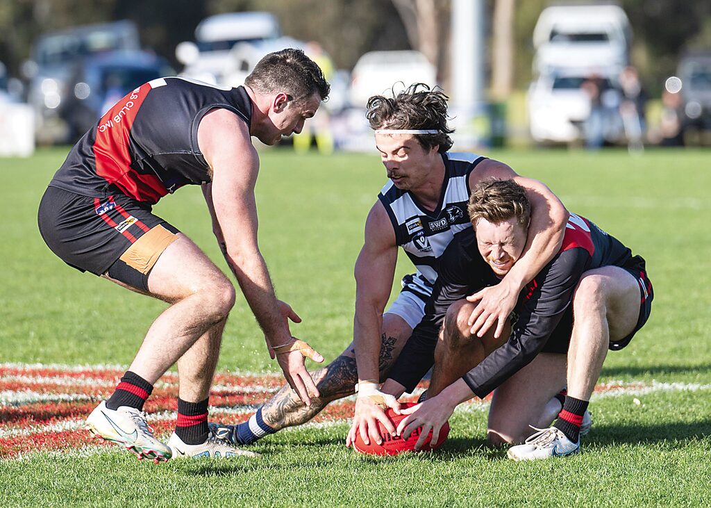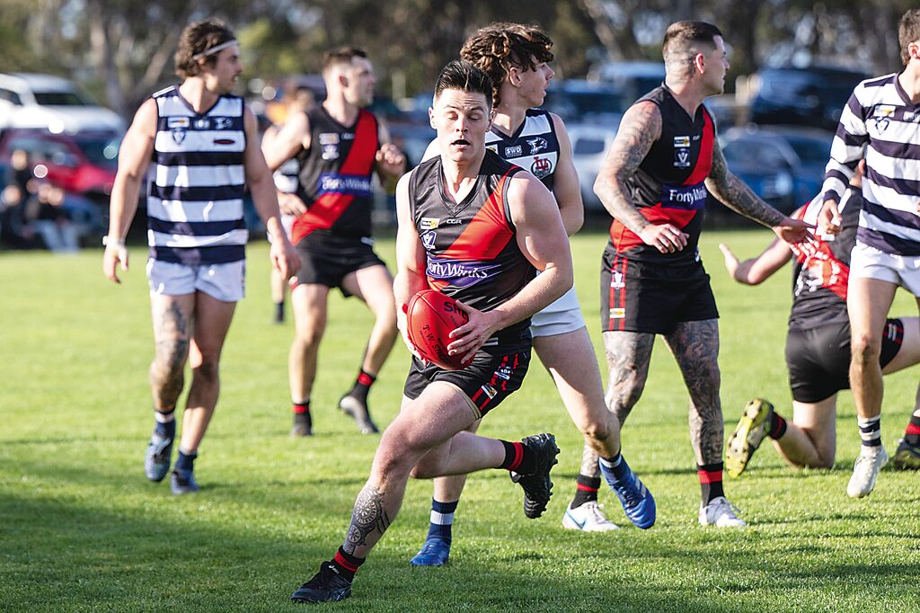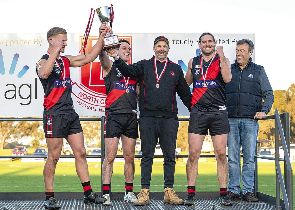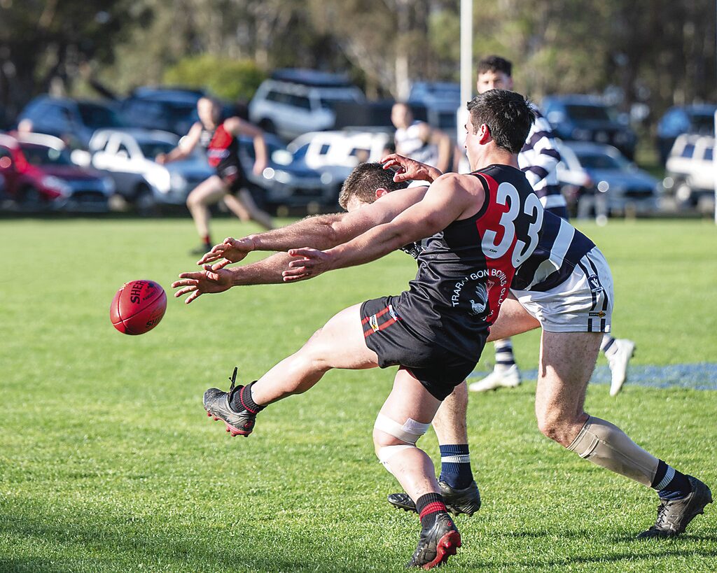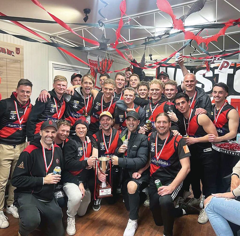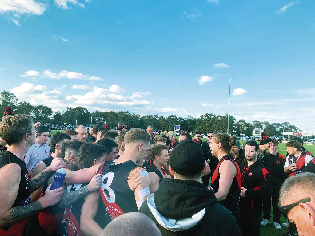 NORTH GIPPSLAND By LIAM DURKIN THE 2023 North Gippsland Football-Netball League senior Grand Final may well go down as the most ironic ever. Two teams, in Traralgon Tyers United and Woodside, who had kicked goals with ease during the season, struggled to find the middle for most of Grand Final day. The final scoreboard read 4.14 (38) to 2.8 (20), making for one very scrappy affair in Heyfield. TTU didn’t score their first goal until midway through the third quarter. Woodside didn’t score any after halftime. The Wildcats, who had often put up scores of more than 200 during the season, were kept to the lowest score ever for a North Gippsland FNL Grand Final. In fact, Woodside’s final score was the exact same as what wooden spooners Gormandale had managed against TTU in a game this season. There is surely some irony in that. Of all the statistics associated with the Bombers’ unbeaten season, that stat above might just be the one that demonstrates how strong TTU really was this year. Not that the Wildcats didn’t have their chances, and in such a low-scoring game, they were well and truly in with a show up until three quarter time. There was just too much irony. For much of this season, commentary had surrounded the Bombers being on the edge of their player points. Points were again a talking point for TTU in the Grand Final, albeit by the number of behinds they registered on the scoreboard. Bombers co-captain Jye Neilsen took out the best-on-ground medal, but he too wasn’t sparred the irony of contributing a number of behinds to the overall tally, not to mention a couple missing altogether. That he sealed the premiership for TTU with a major right on the goal line perhaps stopped any potential for a cruel, ironic twist that can sometimes meet a team entering a Grand Final undefeated. The Bombers had to overcome worrying signs in windswept Heyfield. The Wildcats, with the weight of sentimentality on their side, kicked the only two goals for the first half, and led by 10 points at the main break. Woodside had wanted a dogfight, and they had one. The Wildcats second goal came after a neat handball from co-captain Ryan Foat was collected by fellow leader Dan Missen, who curled it home in the breeze on the eve of halftime. Little was anyone to know that would be the last time the goal umpire extended both arms for Woodside. TTU was denied a couple of chances before the break, with the ball rolling into the post out of congestion at the 33-minute mark. A second quarter lasting the best part of 35 minutes showed just how congested the contest was. There was more of the same in the third term, as the ball was sent from end to end between the arcs. In some ways, it was country footy personified; man-on-man, no 45s, kick it to a contest and hope someone wins it. With no one daring to attack from the top side of the ground, Bombers defender Liam Michie decided to take a punt from a kick in. He took one bounce, and another before sending the ball to the wing. Again, somewhat ironically, the Bombers’ first goal came from the top side, when league best-and-fairest winner Liam Willaton found some space from a hit up, faced up, and smartly used the wind to swing the ball through from left to right at the 12-minute mark. That goal sparked some life into the game, and TTU hit the lead at the 20-minute mark thanks to Ricky Cochrane. Cochrane had missed the semi-final, and was brought back into the team for the decider. What a time to repay the faith. While the scoreboard wasn’t becoming an issue, Woodside had some issues around the ground as the Bombers controlled possession. A rare Wildcats inside 50 for the term was thwarted when a set shot from Shaun Cusack didn’t make the distance. Woodside might have been a bit frustrated at this stage, as a downfield free kick was paid to Guy Sinclair, who added another behind to the total. Come three quarter time, with TTU ahead by one goal, the Bombers were instructed by playing-coach Jack Brown to stick to the man-on-man method that had served them well the previous term. Brown had the final say, leaving fellow coach Jamie Aitken (non-playing) to dissect the magnets. Brown may well have been feeling slightly conflicted, as his Morwell premiership teammate Michael Duncan was addressing the Woodside team at the same time. The sight of their Morwell premiership coach Harmit Singh helping the Wildcats however might have even spurred Brown on further. TTU got away to the perfect start, with a goal to Sinclair in the first minute. The goal umpire made him wait to see if his snap shot on the run was touched, before cueing a huge celebration when it was given the all-clear. Sinclair set off on a victory lap toward the TTU bench who were right nearby. Having played at TTU for many seasons, and been in-and-out of retirement, the outpouring of emotion was understandable for Sinclair as it looked as though the red and black faithful would soon be cheering their first senior flag in nearly two decades. On a day where there was a noticeable amount of floaters kicked, the Bombers thought they had another goal when Hayden Willaton kicked truly and was then flattened. The kick was recalled by umpire Lachlan Floyd, who to his credit, wasn’t falling for anything as a few players flopped for free kicks amid a bit of push-and-shove. The Wildcats battled on, but looked out on their feet by the 15-minute mark, the result of perhaps playing four finals in as many weeks, compared to the Bombers who had only played one. With the margin 12 points at the 20-minute mark, Woodside went for glory, kicking long straight down the middle. The sealing play however came when Michie mopped up inside defensive 50, handballed it to Liam Willaton, who well and truly showed why he is nicknamed “Magic”, finding his brother Hayden with a neat pass inside 50 on a tight angle. Hayden kicked toward goal, and much to TTU’s delight, saw the ball marked on the goal line by Nielsen, who ensu